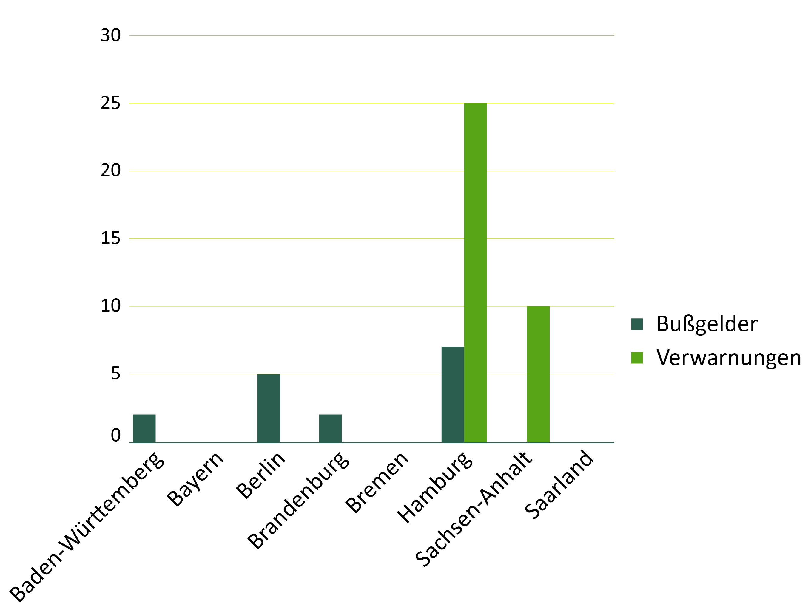 Es fällt zudem auf, dass insbesondere die Datenschutzbehörden in Hamburg und Sachsen-Anhalt offenbar eine gewisse Bereitschaft zeigen, statt der unmittelbaren Verhängung eines Bußgelds zunächst lediglich Verwarnungen (Art. 58 Abs. 2 lit. b) DSGVO) auszusprechen.