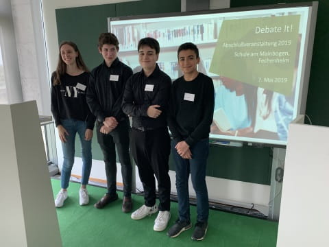 Wir bieten Debate It! seit 2014 an unseren vier Standorten in Deutschland an. Im Rahmen des Projektes trainieren wir mit den Teilnehmenden die für das spätere Berufsleben wichtigen Kernkompetenzen Sprache und Ausdruck. Das Angebot richtet sich dabei an Schulen oder Einrichtungen, die aus eigenen Mitteln keine vergleichbaren Programme aufsetzen können. In Frankfurt kooperieren wir bereits seit vier Jahren erfolgreich mit der Schule am Mainbogen in Fechenheim.