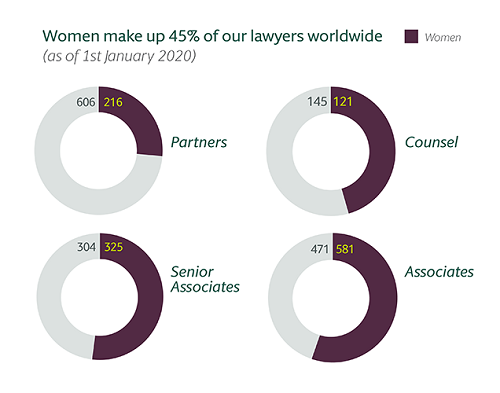 In listings - we have 40 women in senior management roles across the firm, which includes our Board, International Management Committee, Regional Managing Partners, Office Managing Partners, Practice Groups Leaders and Practice Area Leaders. They act as role models for our people, our clients and our industry, and are committed to creating a diverse and inclusive workplace where everyone can thrive.
