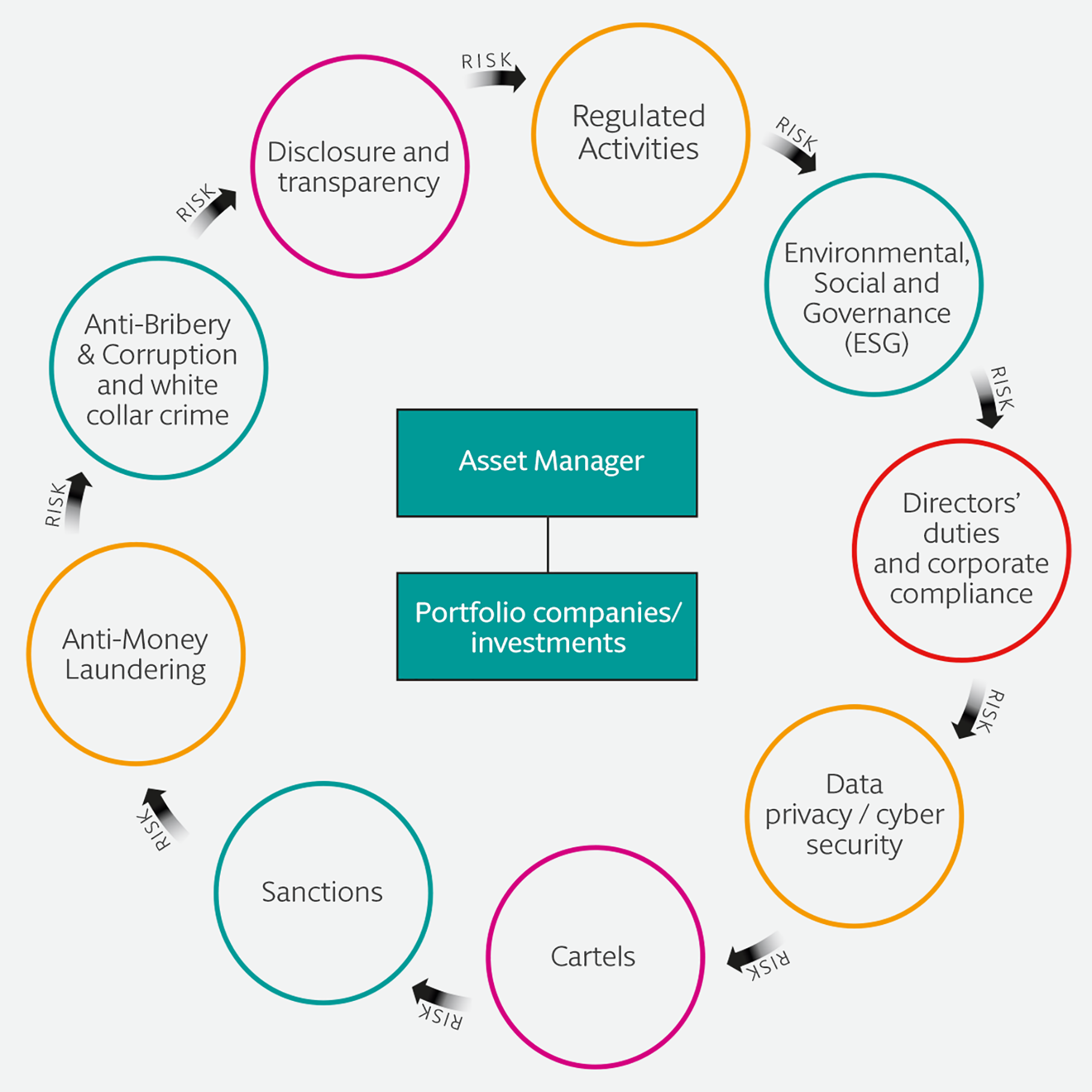 Our team works with asset managers to understand their risk profile and business objectives, including those of their portfolio investments, to identify and deal with these risks, review or design compliance programmes and provide support if things go wrong.