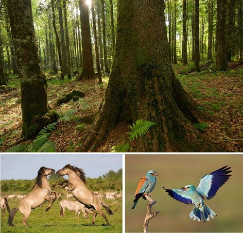 Image 1 (Forest), credits: Staffan Widstrand / Rewilding Europe; Image 2 (Horses), credits: Mark Hamblin / Rewilding Europe; Image 3 (Birds), credits: Markus Varesvuo / Rewilding Europe