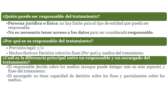 A este respecto, la Guía no resulta especialmente innovadora. Recuerda los conceptos de responsable y encargado del tratamiento bajo el RGPD aunque no sean conceptos nuevos.