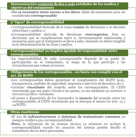 La Guía 7/2020 sobre los conceptos de responsable y encargado en el RGPD (la “Guía”), en fase de consulta pública hasta el 19 de octubre de 2020, analiza en detalle los conceptos de responsable, encargado y corresponsable del tratamiento y todo lo que conlleva cada uno de estos supuestos. A continuación desgranaremos algunos de los puntos más relevantes que detalla el CEPD en relación con los conceptos y responsabilidades que conllevan estos roles y, en concreto, nos centraremos en la figura del corresponsable, que día tras día va tomando mayor protagonismo.