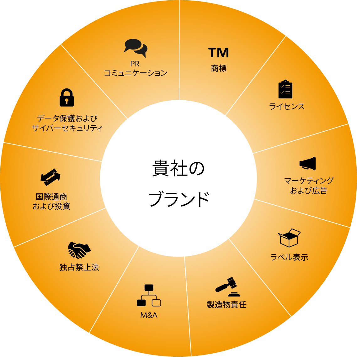 ブランドはどの企業にとっても企業価値の中核となるものですが、単に商標として登録しておくだけのものではありません。ブランドを取り巻く様々な法律は、企業にとって有利となる場合もあれば、不利となる場合もありますので、ブランドの考案や商業化および保護については、世界を広く網羅する包括的な取組みが不可欠となります。